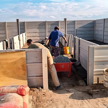 Ejecutamos chancherías, caballerizas, plateas para silos, montado de estructuras, biodigestores y viviendas para el personal, cumpliendo estándares técnicos y tiempos acordados.